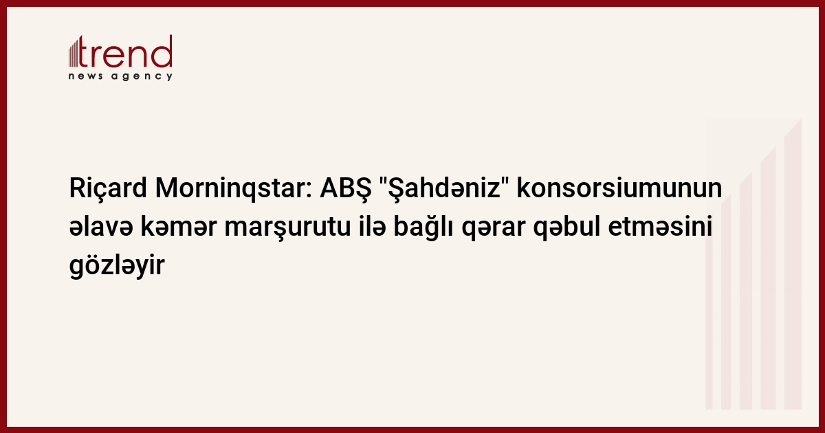 Səfirin sözlərinə görə, ABŞ növbəti ay "Şahdəniz" konsorsiumunun Azərbaycan qazını Avropaya daşıyacaq əlavə kəmər marşurutu ilə bağlı qərar qəbul etməsini gözləyir: