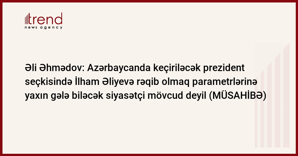 Hakim Yeni Azərbaycan Partiyasının Sədr müavini, icra katibi Əli Əhmədovun Trend-ə müsahibəsi