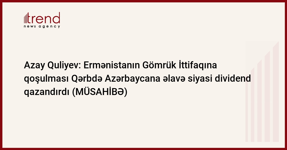 - Bəs yaxşı, Ermənistanın Gömrük İttifaqına qoşulması Azərbaycana nə vəd edir? Burada bizi qane etməyəm məqamlar ola bilərmi?