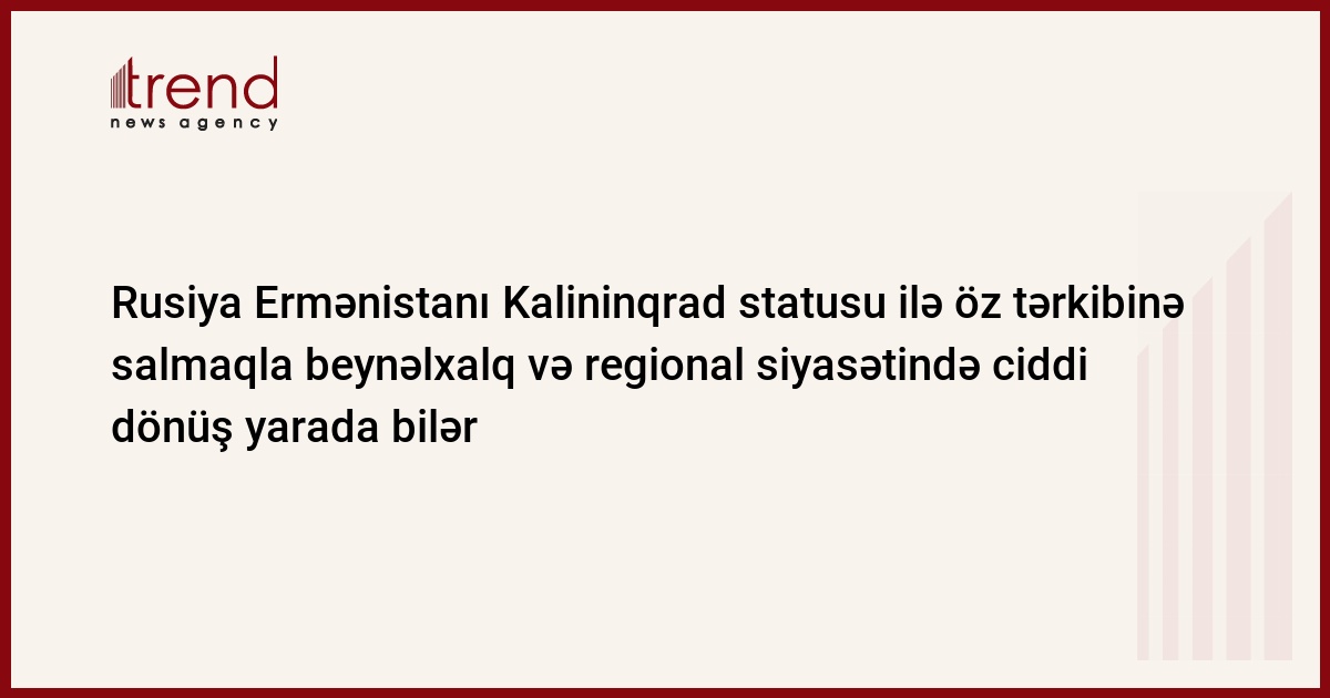 Rusiya Ermənistanı Kalininqrad statusu ilə öz tərkibinə salmaqla beynəlxalq və regional siyasətində ciddi dönüş yarada və çox böyük təhlükələrdən xilas ola bilər. Trend-in məlumatına görə, bunu Siyasi İnnovasiya və Texnologiya Mərkəzinin direktoru, politoloq Mübariz Əhmədoğlu bu gün keçirilən brifinqdə bildirib.