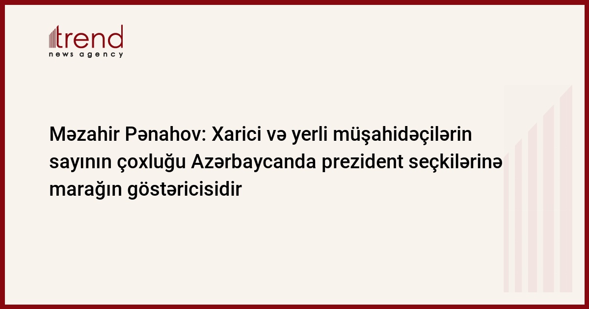 Xarici və yerli müşahidəçilərin sayının 30 minə çatması beynəlxalq ictimaiyyətin Azərbaycanda keçiriləcək prezident seçkilərinə marağının göstəricisidir. Trend-in məlumatına görə, bunu Mərkəzi Seçki Komissiyasının (MSK) sədri Məzahir Pənahov komissiyanın çərşənbə günü keçirilən iclasında çıxışı zamanı deyib.