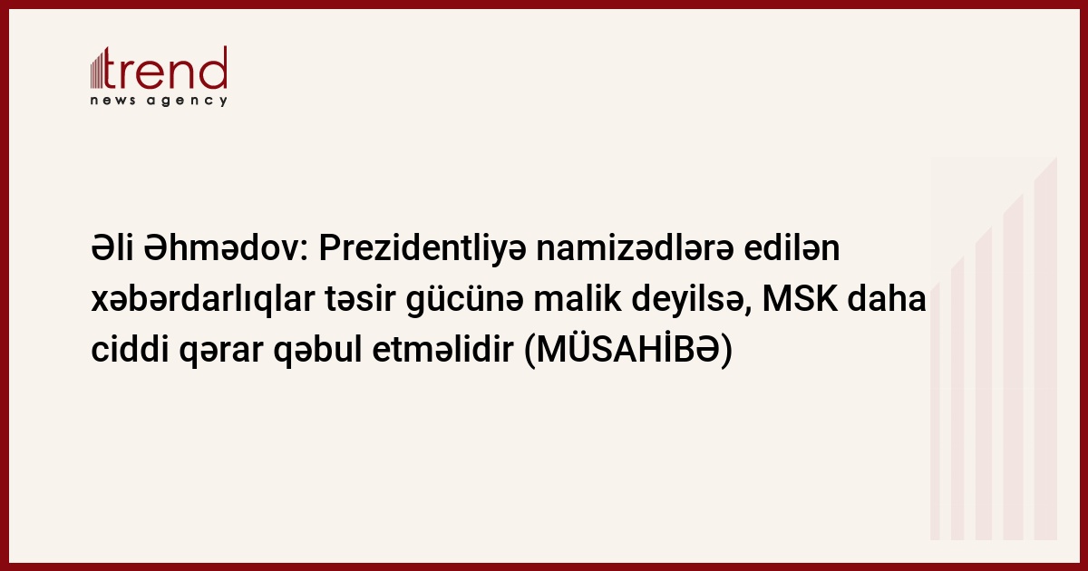 Yeni Azərbaycan Partiyasının sədr müavini - icraçı katibi Əli Əhmədovun Trend-ə müsahibəsi