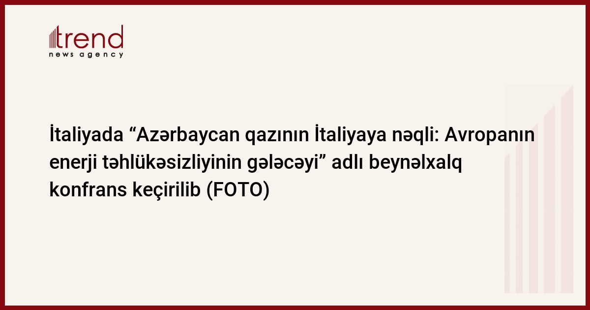 İtaliyanın aparıcı tədqiqat qurumlarından biri olan Beynəlxalq Münasibətlər İnstitutu (BMİ) Romadakı Ripetta konfrans mərkəzində "Azərbaycan qazının İtaliyaya nəqli: Avropanın enerji təhlükəsizliyinin gələcəyi" adlı beynəlxalq konfrans keçirib.
