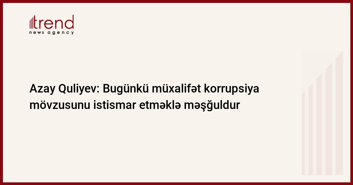 Bugünkü müxalifət korrupsiya mövzusunu istismar etməklə məşğuldur. Bunu Trend-ə millət vəkili Azay Quliyev deyib.
