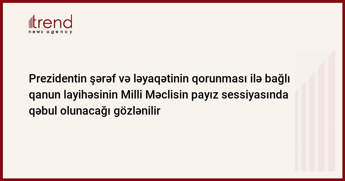 Azərbaycanda Prezidentin şərəf və ləyaqətinin qorunması ilə bağlı qanun layihəsinin Milli Məclisin payız sessiyasında qəbul olunacağı gözlənilir.