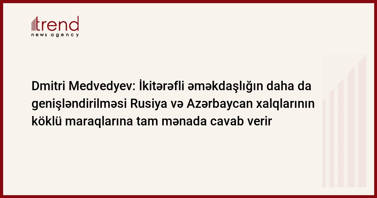 Rusiya Federasiyası Hökumətinin sədri Dmitri Medvedyev İlham Əliyevi Azərbaycan Prezidenti vəzifəsinə yenidən seçilməsi münasibətilə təbrik edib.
