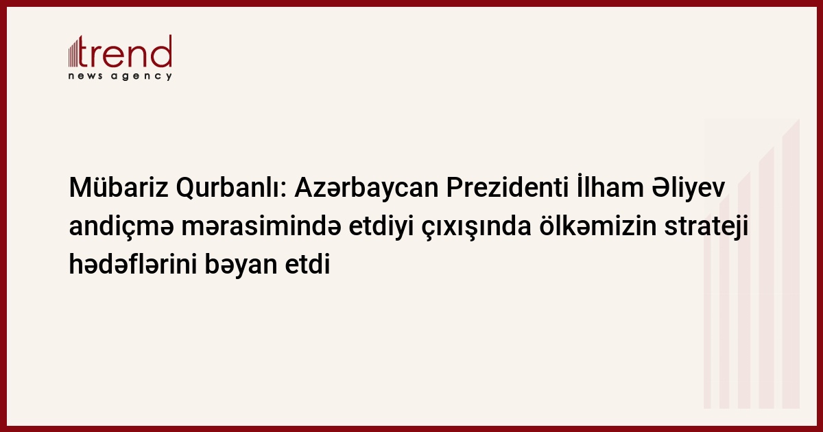 Azərbaycan Prezidenti İlham Əliyev andiçmə mərasimində etdiyi çıxışında ölkəmizin strateji hədəflərini bir daha bəyan etdi. Bunu Trend-ə açıqlamasında hakim Yeni Azərbaycan Partiyasının (YAP) icra katibinin müavini, deputat Mübariz Qurbanlı deyib.