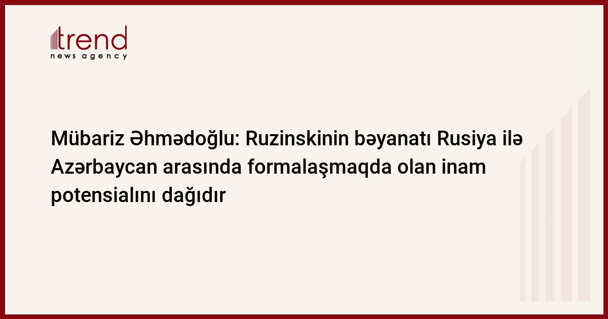 M.Əhmədoğlu hesab edir ki, A.Ruzinskinin verdiyi bəyanatın bir neçə diqqətçəkən məqamı var: "Ruzinski KTMT-yə istinad edir. KTMT isə dəfələrlə bəyan edib ki, Dağlıq Qarabağda müharibəyə qarışmayacaq. Beləliklə, Ruzinskinin KTMT-nin adı ilə ermənilərin maraqlarına xidmət etdiyi aydın görünür. Onun bəyanatı Rusiya ilə Azərbaycan arasında formalaşmaqda olan inam potensialına ciddi zərbə vurdu: damla-damla toplanan inam potensialını birdən-birə dağıtdı. İndiki məsuliyyətli dövrdə Rusiya və Azərbaycan arasında inam potensialı hədsiz vacibdir. Rəsmi Moskva təxminən bir ay ərzində A.Ruzinskinin bu bəyanatı barədə susub. Rusiyanın Müdafiə və Xarici İşlər nazirlikləri rus hərbçinin bu bəyanatını təkzib etməyiblər".