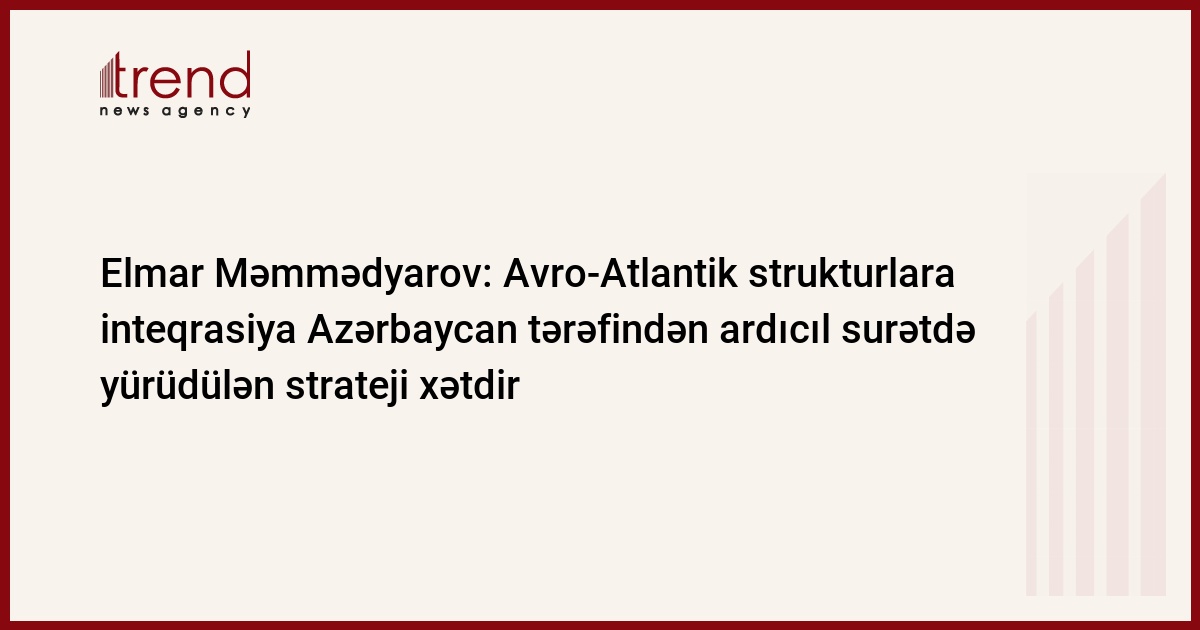 Avro-Atlantik strukturlara inteqrasiya Azərbaycan tərəfindən ardıcıl surətdə yürüdülən strateji xətdir və bu xüsusda Aİ ilə siyasi, iqtisadi və humanitar sahələrdə tərəfdaşlığın qurulması Azərbaycanın xarici siyasətinin əsas prioritetlərindəndir. Trend-in Azərbaycan Xarici İşlər Nazirliyinin mətbuat xidmətinə istinadən verdiyi məlumata görə, bunu Azərbaycanın xarici işlər naziri Elmar Məmmədyarov İtaliya KİV-lərinə müsahibəsində bildirib.