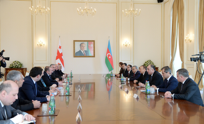 Gürcüstan Prezidenti Georgi Marqvelaşvili görüşdə çıxış edərək dedi: "Çox sağ olun, cənab Prezident. Bəli, bu səfər bizim üçün xüsusi əhəmiyyət daşıyır. Biz azərbaycanlı həmkarlarımızla inkişaf etdirdiyimiz şəxsi münasibətlərə xüsusi həssaslıqla yanaşırıq. Siz düzgün olaraq xatırlatdınız ki, ölkələrimiz əməkdaşlığın xüsusi presedentini yaradır, nümunəvi əməkdaşlıq üçün, problemləri deyil, imkanları inkişaf etdirmək üçün şərait yaradır. Görüşümüzdə Siz bizim birlikdə inkişaf etdirdiyimiz, faktiki olaraq artıq tarixə çevrilən, istər regionumuzda, istərsə də regionumuzun hüdudlarından kənarda yaşayan xalqlar üçün tarixi imkanlar yaradan istiqamətləri düzgün vurğuladınız. Biz imkanlar yaradırıq. Biz bu imkanları birlikdə qururuq. Biz çox şadıq ki, belə səviyyədə əməkdaşlıq təkcə zəmanəmizdə deyil, gələcəyə baxanda da inkişaf edən, regionda yeni layihələr, yeni dinamika yaradan əməkdaşlıq kimi görünür".