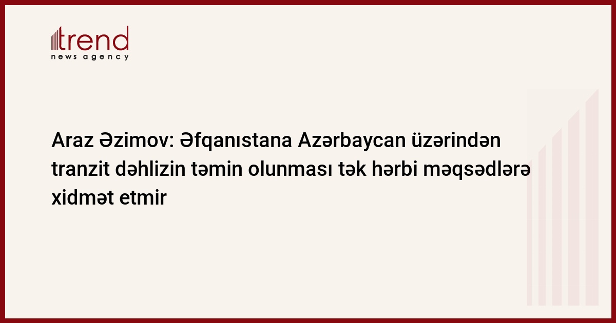 Onun sözlərinə görə, Əfqanıstana Azərbaycan üzərindən tranzit dəhlizin təmin olunması tək hərbi məqsədlərə yox, ümumilikdə təhlükəsizlik və iqtisadi inkişaf məqsədlərinə xidmət edəcək.