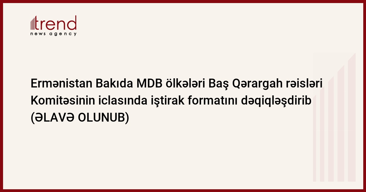 Ermənistan Müdafiə Nazirliyi Bakıda keçiriləcək MDB ölkələri Baş Qərargah rəisləri Komitəsinin iclasında iştirak formatını dəqiqləşdirib. Trend xəbər verir ki, bu barədə "Armenia Today" yazıb.