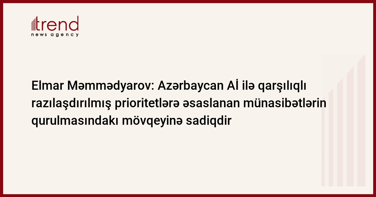 E.Məmmədyarov vurğulayıb ki, Azərbaycan Aİ ilə qarşılıqlı razılaşdırılmış prioritetlər və ümumi maraqlara əsaslanan münasibətlərin qurulmasında maraqlı olduğunu bildirən mövqeyinə sadiqdir. Bu əməkdaşlığın dəyəri Azərbaycan ilə Aİ arasında keçmiş və hazırkı uğurlu əməkdaşlıqla dəyərləndirilir.