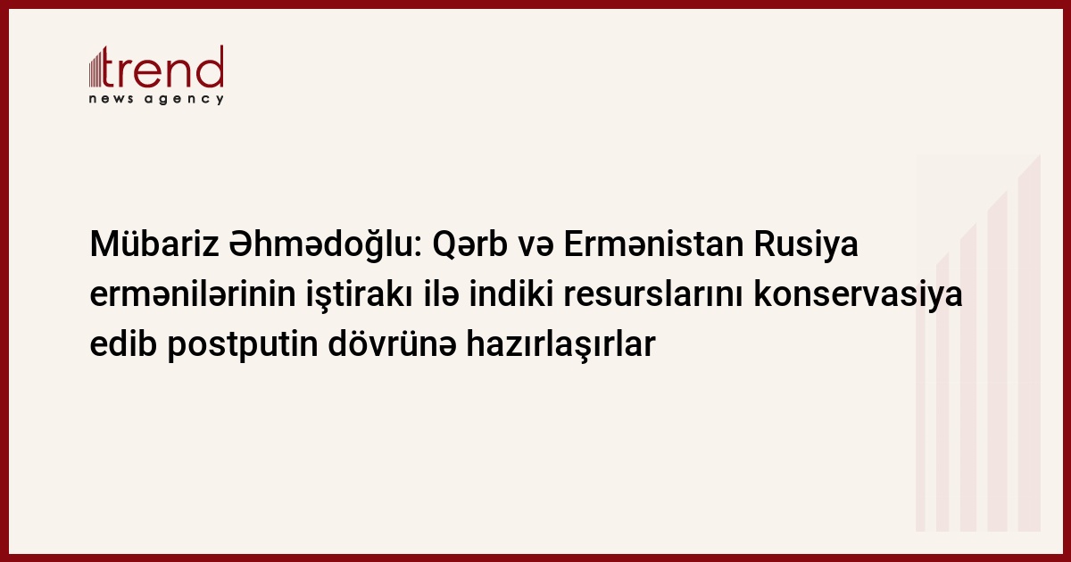 Qərb və Ermənistan Rusiya ermənilərinin iştirakı ilə indiki resurslarını konservasiya edib postputin dövrünə hazırlaşırlar. Trend xəbər verir ki, bunu Siyasi İnnovasiya və Texnologiyalar Mərkəzinin direktoru, politoloq Mübariz Əhmədoğlu bu gün keçirdiyi mətbuat konfransında deyib.