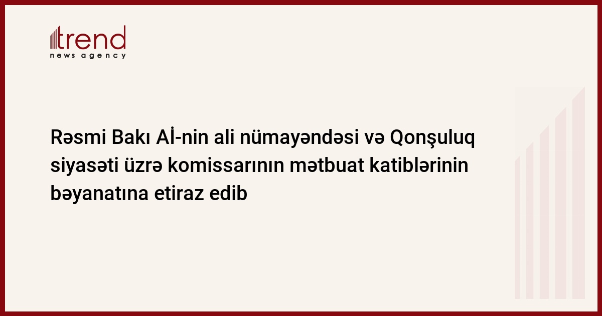 Avropa İttifaqının (Aİ) ali nümayəndəsi və İttifaqın Qonşuluq siyasəti üzrə komissarının mətbuat katiblərinin mayın 3-də verdikləri bəyanat siyasi mahiyyət daşımaqla mövcud reallığı əks etdirmir və Rauf Mirqədirova qarşı açılmış cinayət işinin, eləcə də Leyla Yunusova və Arif Yunusovun bu prosesdə şahid qismində dəvət olunmasının əsl mahiyyətini təhrif etməyə cəhddir. Trend-in məlumatına görə, bunu Azərbaycan Xarici İşlər Nazirliyinin mətbuat xidmətinin rəhbəri Elman Abdullayev bəyanatı şərh edərkən jurnalistlərə deyib.