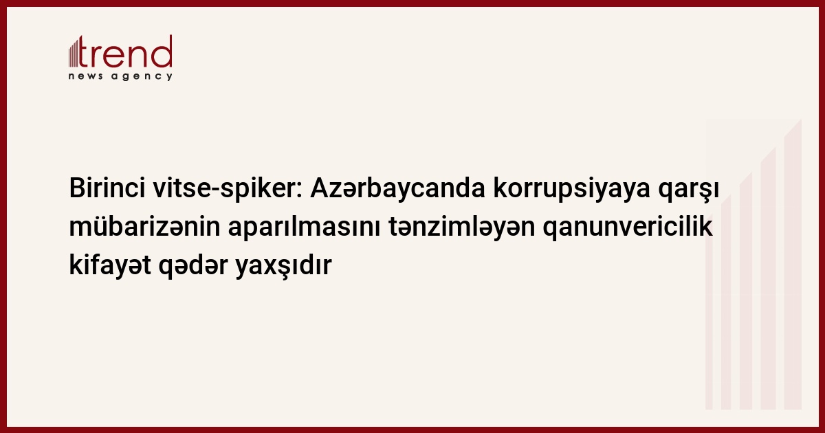 Azərbaycanda korrupsiyaya qarşı mübarizənin aparılmasını tənzimləyən qanunvericilik kifayət qədər yaxşıdır. Trend-in məlumatına görə, bunu jurnalistlərə açıqlamasında Milli Məclisin birinci vitse-spikeri Ziyafət Əsgərov bildirib.
