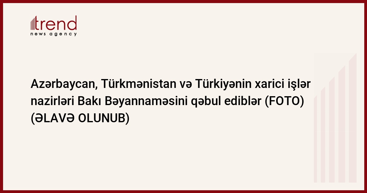 Azərbaycan, Türkmənistan və Türkiyənin xarici işlər nazirləri Elmar Məmmədyarov, Rəşid Meredov və Əhməd Davudoğlu Bakı Bəyannaməsini qəbul ediblər. Trend-in məlumatına görə, bunu Azərbaycan XİN-in rəhbəri E.Məmmədyarov üçtərəfli görüşün yekunlarına dair keçirilən mətbuat konfransında deyib.