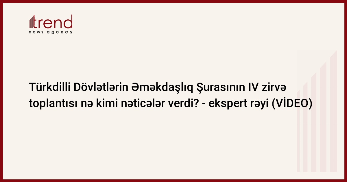 - Arzu müəllim, bildiyimiz kimi, ötən həftə Türkiyədə Türkdilli Dövlətlərin Əməkdaşlıq Şurasının IV zirvə toplantısı keçirildi. Sammitdə türkdilli ölkələrin birgə fəaliyyəti, əməkdaşlığı və s. bir sıra önəmli məsələlərə toxunuldu. Sizcə, toplantıda əsas önə çıxan məqamlar nələrdən ibarət idi?