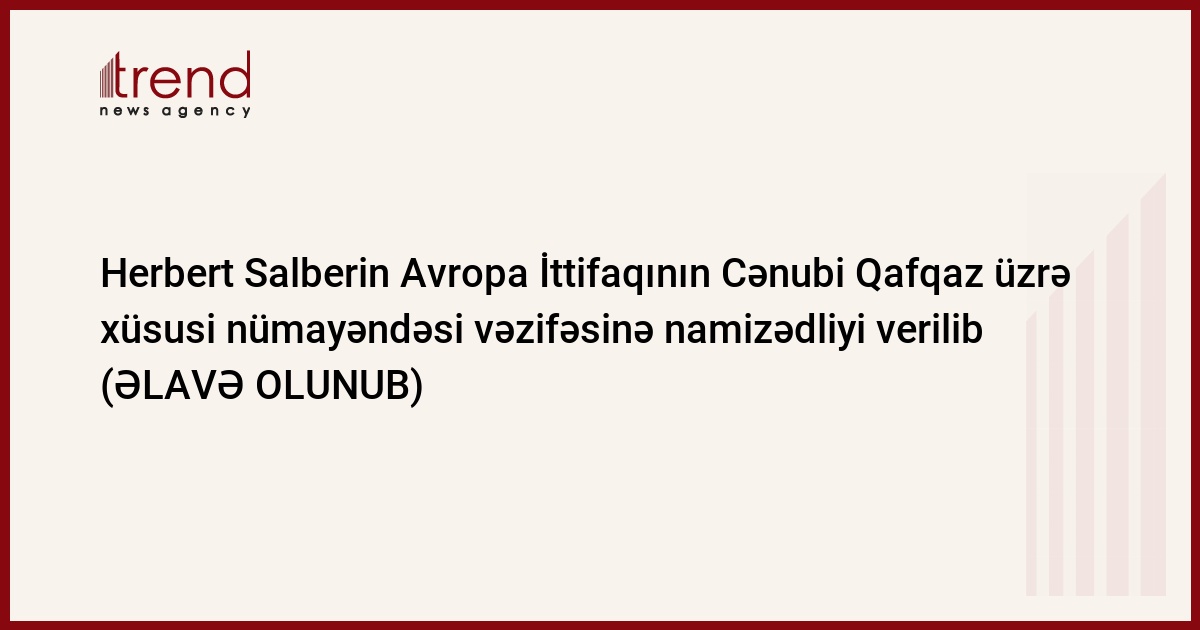 Avropa İttifaqının Cənubi Qafqaz və Gürcüstanda böhran üzrə xüsusi nümayəndəsi vəzifəsinə Herbert Salberin namizdəliyi verilib.