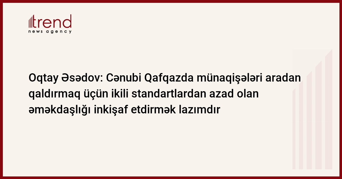 Cənubi Qafqazda mövcud olan münaqişələri, çağırışları aradan qaldırmaq üçün ilk növbədə qarşılıqlı etimada əsaslanan, ikili standartlardan azad olan əməkdaşlığı inkişaf etdirmək lazımdır.