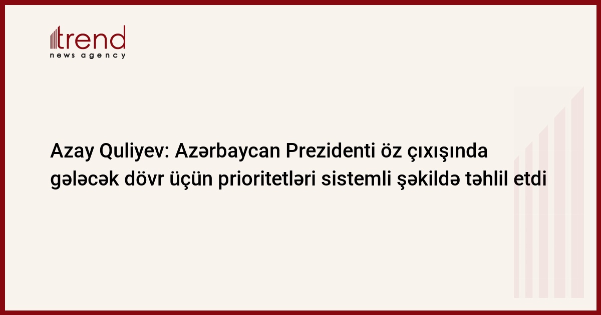 A.Quliyev bildirib ki, ümumiyyətlə, Azərbaycan Prezidenti öz çıxışında Azərbaycanın keçdiyi inkişaf yolunu, müasir inkişaf səviyyəsini, gələcək dövr üçün prioritetlərini sistemli şəkildə təhlil etdi.