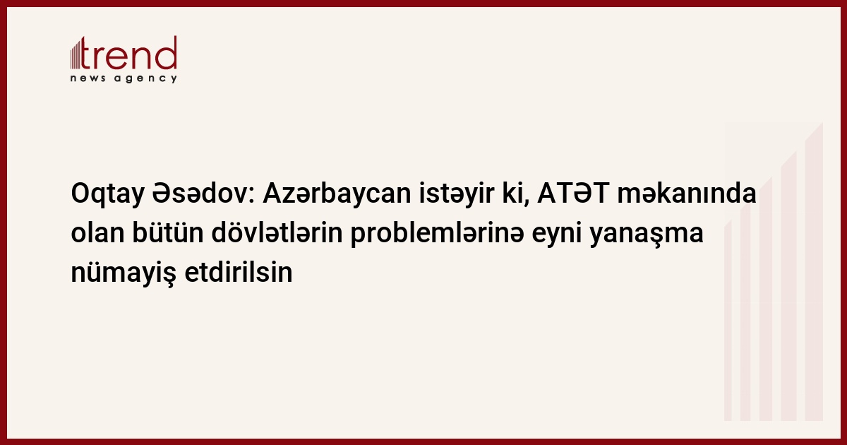 O.Əsədov vurğulayıb ki, Azərbaycan bütün dövlətlərin ərazi bütövlüyünü dəstəkləyir: "Biz istəyirik ki, ATƏT məkanında olan bütün dövlətlərin problemlərinə eyni yanaşma nümayiş etdirilsin. Biz qurumun təsir mexanizmlərinin daha güclü olmasını istəyirik".
