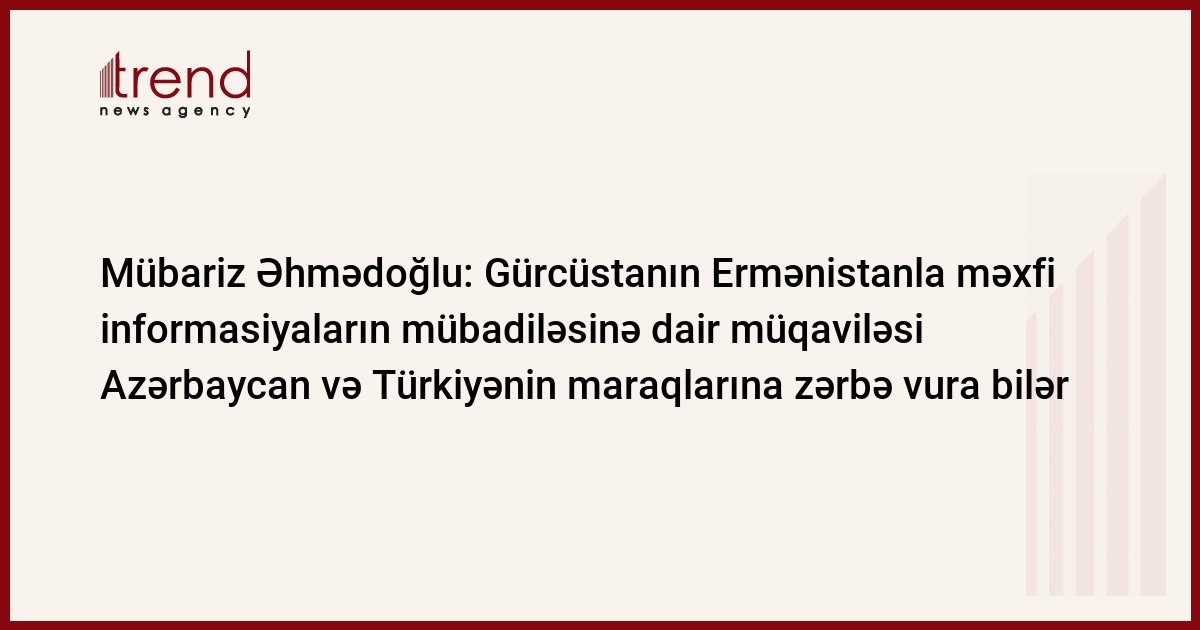 Gürcüstan Türkiyə və Azərbaycanı strateji müttəfiq adlandırır, eyni zamanda Ermənistanla məxfi informasiyaların qorunması və mübadiləsinə dair müqavilə imzalayır. Bunu Trend-ə Siyasi İnnovasiya və Texnologiyalar Mərkəzinin direktoru Mübariz Əhmədoğlu deyib.