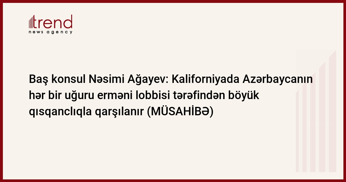 Azərbaycanın Los Ancelesdəki baş konsulu Nəsimi Ağayevin Trend-ə müsahibəsi