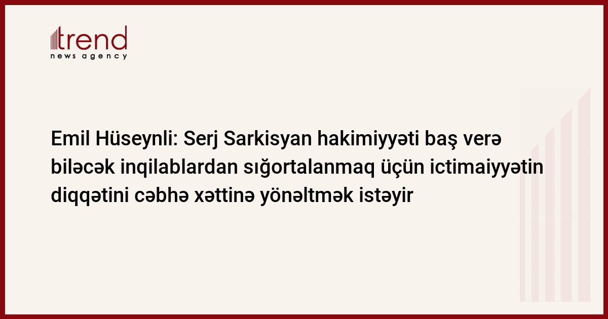 Son günlər cəbhə xəttində yaranmış vəziyyət Ermənistan hakimiyyətinin öz təxribatçı siyasətindən əl çəkmədiyini bir daha sübut edir. Bunu Trend-ə "Düşüncə" Gənclərin İnkişafına Dəstək" İctimai Birliyinin sədri Emil Hüseynli Azərbaycan-Ermənistan cəbhə xəttində yaranmış vəziyyəti, gərginliyin və döyüşlərin intensivliyinin artmasını şərh edərkən deyib.