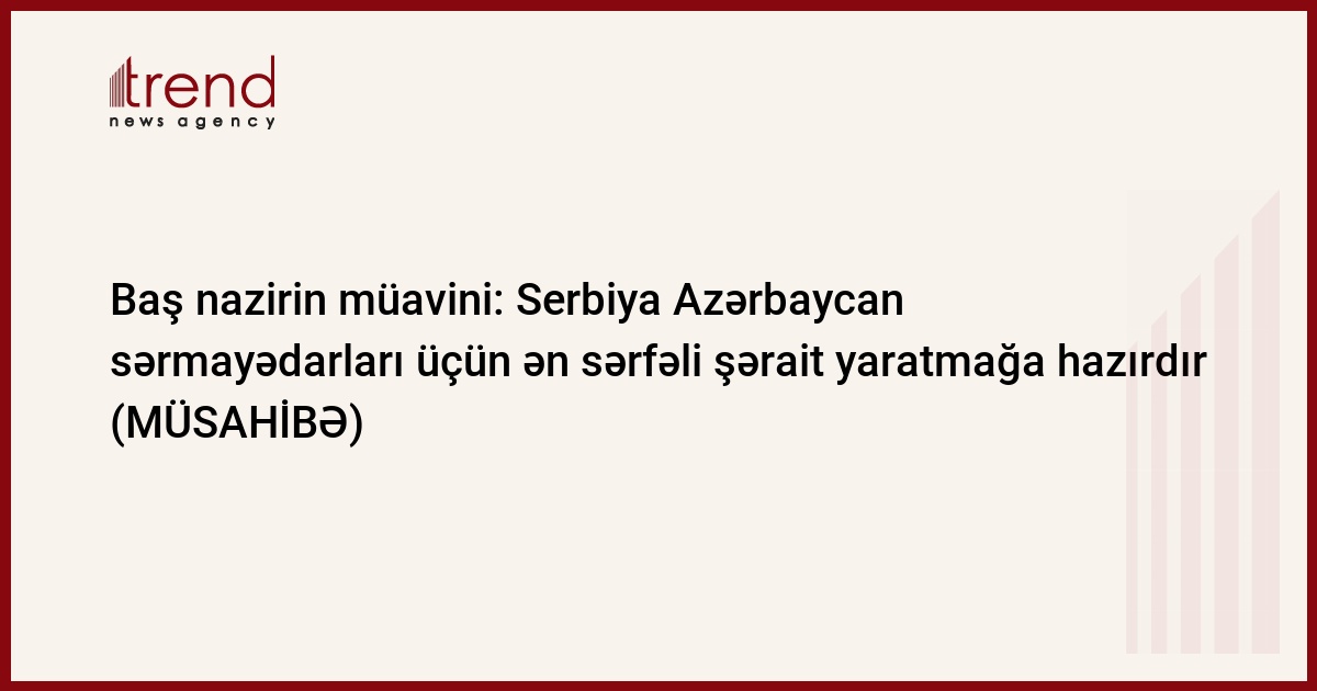 - Serbiya iqtisadi və maliyyə sahələrində böyük potensialı olan ölkədir. Biz Azərbaycan investisiyalarının, xüsusilə, enerji və infrastruktur sahələrinə yatırılmasında çox maraqlıyıq. Həmin sahələrdə artıq birgə layihələr mövcuddur və onlar uğurlu əməkdaşlığın nümunəsi ola bilər. Azərbaycandan olan investorlar üçün ən sərfəli şərait yaradılacaq.
