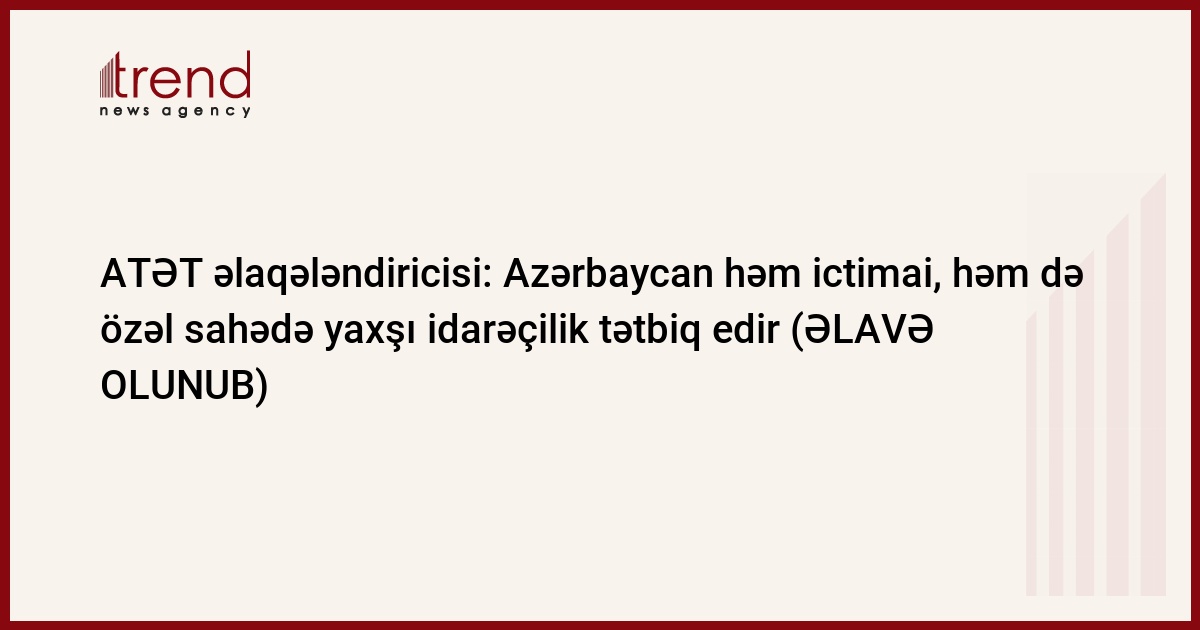 "Son illər Azərbaycan həm ictimai, həm də özəl sahədə yaxşı idarəçilik tətbiq edir. Azərbaycanda vətəndaşlara dövlət qulluğunun göstərilməsində xeyli irəliləyişə nail olunub". Trend xerir ki, bunu ATƏT-in İqtisadi və ətraf mühit məsələləri üzrə əlaqələndiricisi Xəlil Yurdakul Yigitgüdən Azərbaycan Respublikasının Avropa Şurası Nazirlər Komitəsində sədrliyi çərçivəsində Bakıda "İnsan hüquqları və qabaqcıl idarəetmə kontekstində dövlət xidmətlərinin göstərilməsi" mövzusunda keçirilən beynəlxalq konfransın açılış mərasimində çıxışı zamanı bildirib.