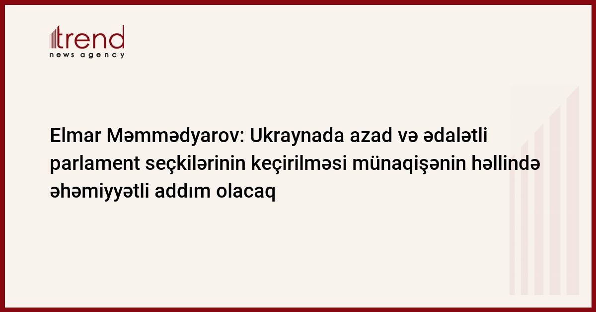 Ukraynada beynəlxalq standartlara cavab verən azad və ədalətli parlament seçkilərinin keçirilməsi bu ölkənin demokratik prosesin gücləndirilməsi üçün gördüyü işlərdə və münaqişənin həllində əhəmiyyətli addım olacaq. Trend-in məlumatına görə, bunu Azərbaycanın xarici işlər naziri, Avropa Şurası Nazirlər Komitəsinin sədri Elmar Məmmədyarov Avropa Şurası Parlament Assambleyasının (AŞ PA) payız sessiyasında deputatların sualını cavablandırarkən deyib.