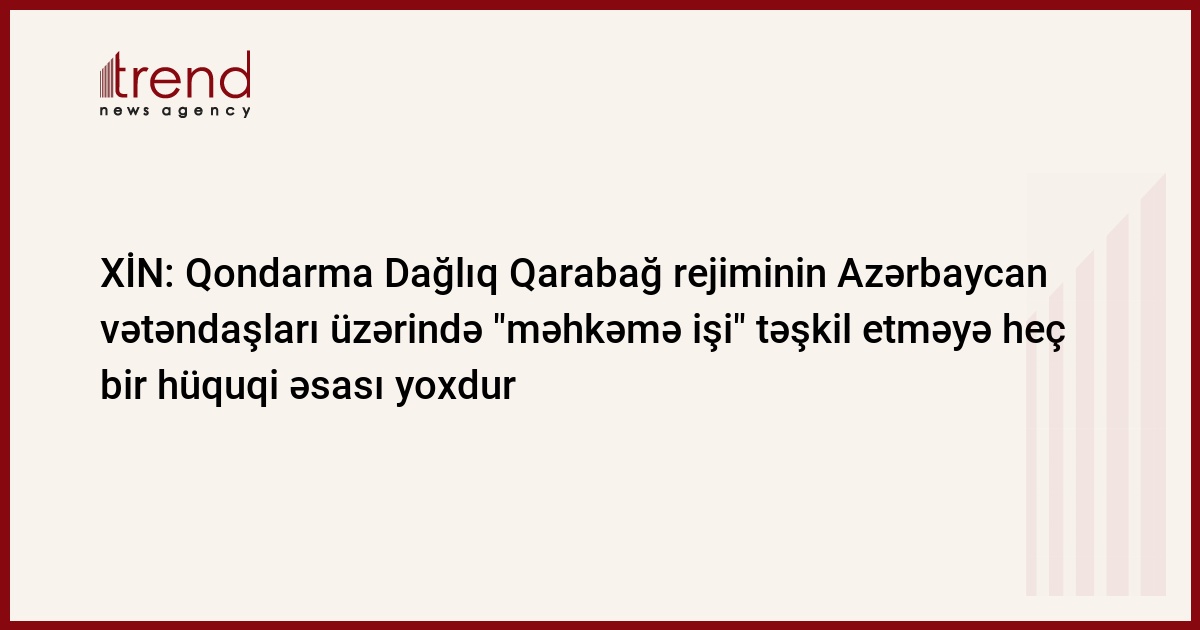 "Qondarma Dağlıq Qarabağ rejiminin Azərbaycan vətəndaşları üzərində "məhkəmə işi" təşkil etməyə heç bir hüquqi əsası yoxdur və bu qondarma "məhkəmə" tərəfindən qəbul ediləcək qərar heç bir hüquqi gücə malik ola bilməz". Trend-in məlumatına görə, bu barədə Azərbaycan Xarici İşlər Nazirliyinin mətbuat xidmətinin Ermənistan kütləvi informasiya vasitələrində Ermənistan tərəfindən girov götürülmüş Şahbaz Quliyev və Dilqəm Əsgərov üzərində qondarma "məhkəmə işinin" təşkil olunacağı haqqında məlumata dair verdiyi açıqlamasında deyilir.