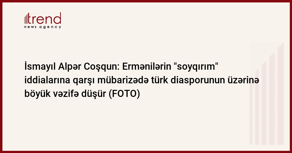 Ermənilərin qondarma "soyqırım" iddialarına qarşı mübarizədə türk diasporunun üzərinə böyük vəzifə düşür. Bunu Trend-ə eksklüziv açıqlamasında Türkiyənin Azərbaycandakı fövqəladə və səlahiyyətli səfiri İsmayıl Alpər Coşqun deyib.