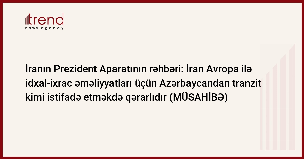 İran İslam Respublikası Prezidenti Aparatının rəhbəri Məhəmməd Nəhavəndianın Trend-ə eksklüziv müsahibəsi