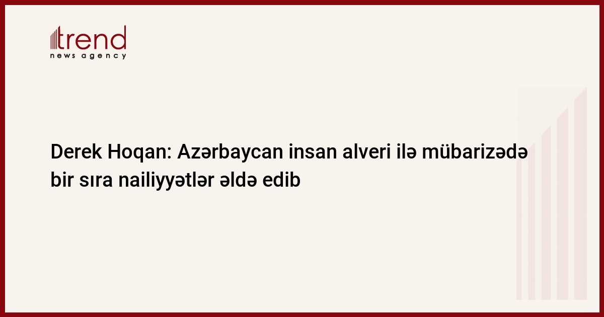 ABŞ-ın Azərbaycandakı səfirliyinin müvəqqəti işlər vəkili Derek Hoqan son illər respublikamızın ictimai-siyasi və iqtisadi həyatında müsbət dəyişikliklərin baş verməsindən məmnunluğunu bildirib, insan alveri ilə mübarizə sahəsində də bir sıra nailiyyətlərin əldə edildiyini, hüquqi mexanizmlərin uğurla tətbiqini, insan alveri qurbanları üçün yaradılmış şəraitin xeyli yaxşılaşdığını, bu baxımdan Azərbaycanın digər dövlətlər üçün nümunə olduğunu, göstərilən istiqamətdə ölkəmizin qabaqcıl təcrübəsinin öyrənilməsinin vacibliyini vurğulayıb.