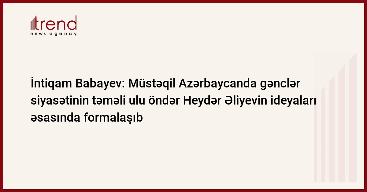 Gənclər və idman nazirinin müavini İntiqam Babayev Trend-ə bildirib ki, müstəqil Azərbaycanda gənclər siyasətinin təməli ulu öndər Heydər Əliyevin ideyaları əsasında formalaşıb: "Onun Azərbaycanda yenidən siyasi hakimiyyətə gəldiyi gündən başlayaraq müstəqil dövlətdə yeni gənc nəslin formalaşması istiqamətində ciddi addımlar atılıb. Məhz ulu öndərin təşəbbüsü ilə Azərbaycanda gənclər forumları keçirilməyə başlandı, gənclər siyasətinin hüquqi-normativ bazası formalaşdı. Bu baza bu gün beynəlxalq standartlara cavab verır və Azərbaycan gənclərinin maraqlarını əks etdirir".