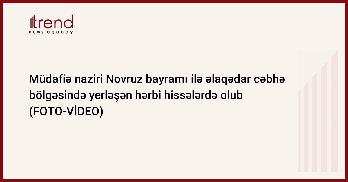 Azərbaycan Respublikasının Prezidenti, Silahlı Qüvvələrin Ali Baş Komandanı cənab İlham Əliyevin tapşırığına əsasən Novruz bayramı ilə əlaqədar Müdafiə naziri general-polkovnik Zakir Həsənov və nazirliyin rəhbər heyəti cəbhəboyu rayonlarda yerləşən birlik, birləşmə və hərbi hissələrdə olub.