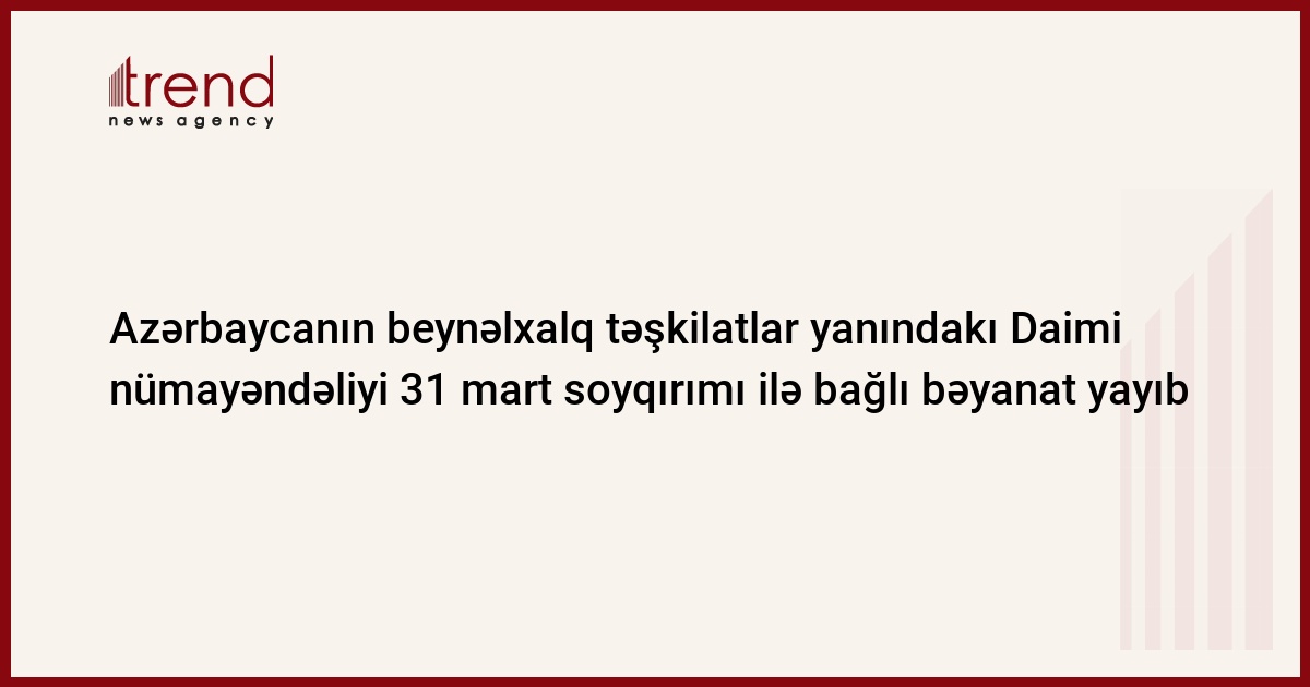 Azərbaycanın Cenevrə şəhərində BMT bölməsi və digər beynəlxalq təşkilatlar yanındakı Daimi nümayəndəliyi 31 Mart - Azərbaycanlıların Soyqırımı Günü ilə bağlı bəyanat yayıb.