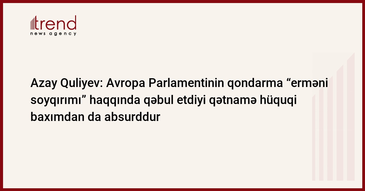 "Avropa Parlamentinin qondarma "erməni soyqırımı" haqqında qəbul etdiyi qətnamə siyasi baxımdan acı təəssüf hissi doğurduğu kimi hüquqi baxımdan da absurddur. Hamı bilir ki, avropalı deputatların bu qərarı qərəzli və tarixi faktlara söykənmədiyi üçün heç bir təsir gücünə malik deyil". Trend-in məlumatına görə, bunu jurnalistlərə Azərbaycan Respublikasının Prezidenti yanında QHT-lərə Dövlət Dəstəyi Şurasının sədri, deputat Azay Quliyev deyib.