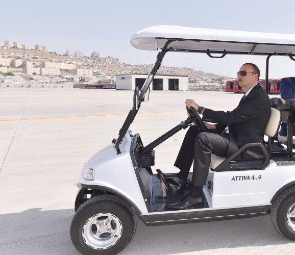 Dövlət başçısı deponun və mərkəzin rəmzi açılışını bildirən lenti kəsib.