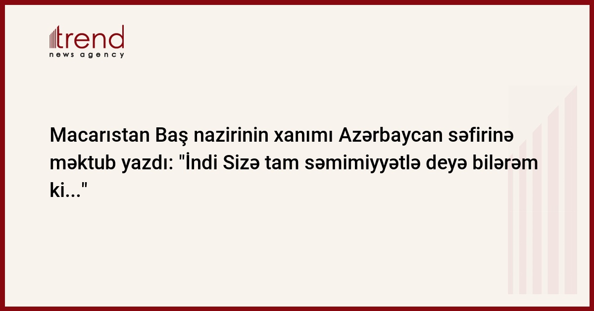 Bu yaxınlarda ölkəmizdə səfərdə olan Macarıstan Baş nazirinin xanımı Anita Levai vətəninə qayıtdıqdan sonra Budapeştdəki Azərbaycan səfiri Vilayət Quliyevə məktub ünvanlayıb.