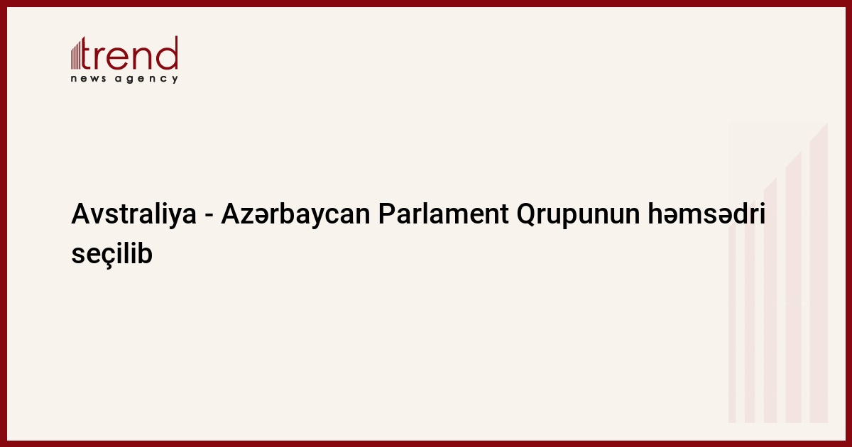 Məlumatda qeyd olunur ki, Avstraliya - Azərbaycan Parlament Qrupunun yaradılması iki ölkə parlamentləri arasında əməkdaşlığın və ümumilikdə ikitərəfli münasibətlərin inkişaf etdirilməsi baxımından əhəmiyyətli addımdır.