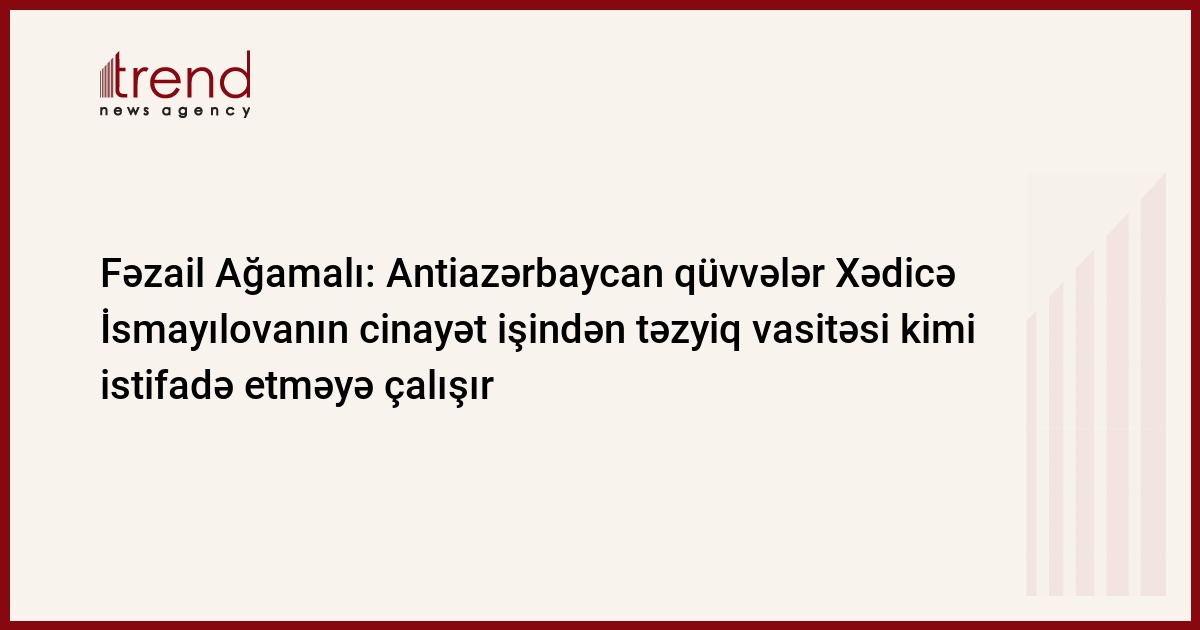 "Bu gün Xədicə İsmayılova törətmiş olduğu cinayət əməllərinə görə istintaq altındadır. Antiazərbaycan qüvvələr isə çalışırlar ki, istintaqın gedişinə təzyiq göstərsinlər. Lakin buna nail ola bilməyəcəklər. Çünki Azərbaycan müstəqil dövlətdir, burada bütün qanunsuz əməllər qanunlar çərçivəsində öz həllini tapır". Bunu Trend-ə Milli Məclisin deputatı Fəzail Ağamalı deyib.
