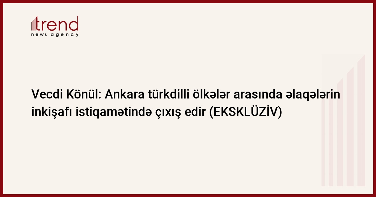 Türkiyə türkdilli ölkələr arasında əlaqələrin inkişafı istiqamətində çıxış edir. Bunu Trend-ə müsahibəsində Türkiyənin müdafiə naziri Vecdi Könül deyib.