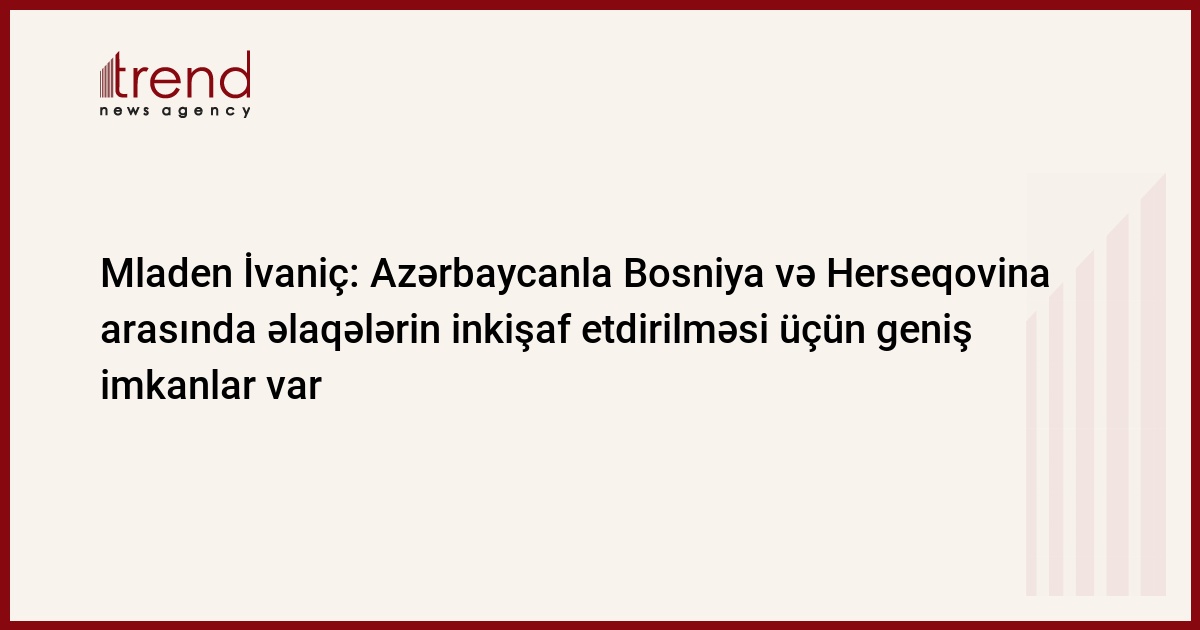 Bosniya və Herseqovinanın Rəyasət Heyətinin Sədri Mladen İvaniç bildirib ki, ölkələr arasında qarşılıqlı münasibətlər hər iki tərəfi qane edir və bu əlaqələrin inkişaf etdirilməsi üçün geniş imkanlar var. O, qeyd edib ki, ölkəsi hər zaman Azərbaycanı dəstəkləyib və bundan sonra da dəstəkləyəcək.