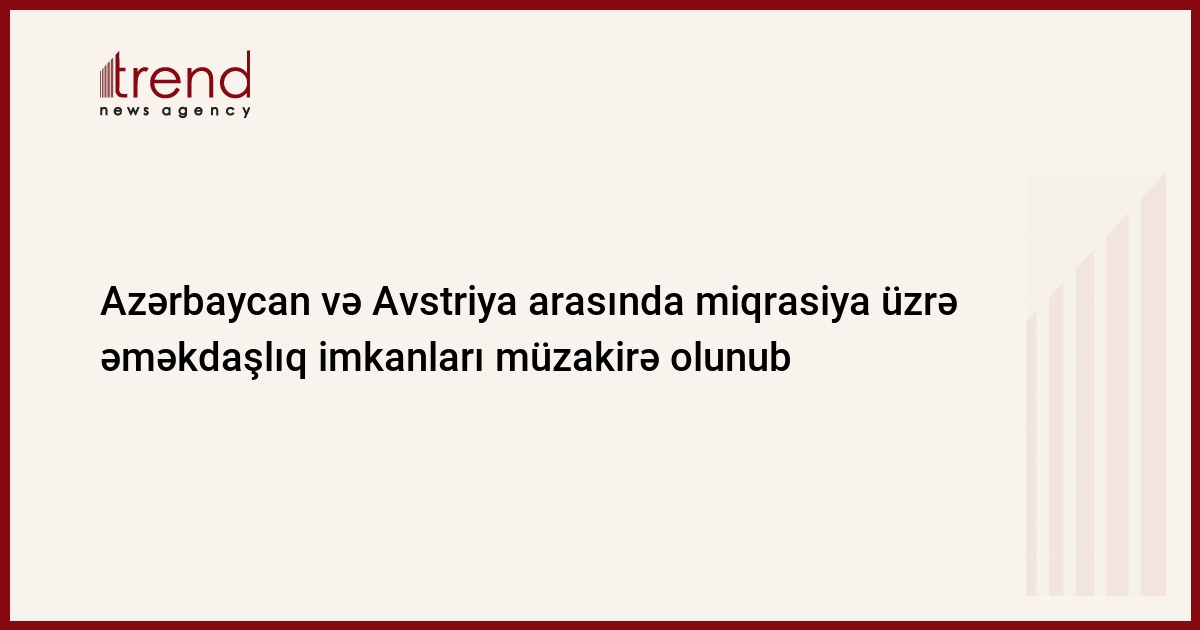 Dövlət Xidmətindən Trend-ə verilən məlumata görə, Avstriyanın ölkəmizdəki səfiri Aksel Vexlə görüşdə Avstriya və Azərbaycan arasında miqrasiya sahəsində əməkdaşlıq imkanları müzakirə olunub.