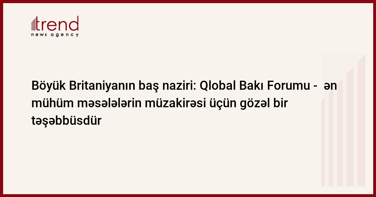 Trend-in məlumatına görə, bu fikirləri Böyük Britaniyanın baş naziri Devid Kemeron bu gün Bakıda "Çoxqütblü dünyaya doğru" mövzusunda keçirilən IV Qlobal Bakı Forumunun açılış mərasiminə ünvanlanmış videomüraciətində səsləndirib.