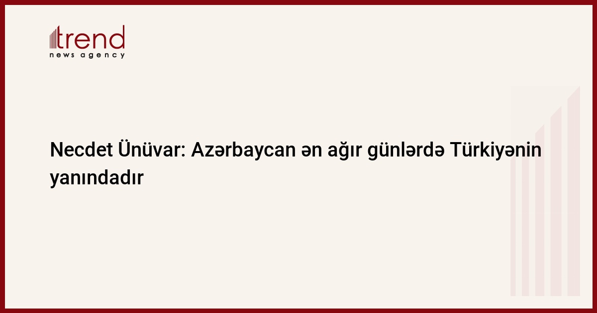 Azərbaycan Türkiyəni ağır günlərində tək qoymadı ki, bu da iki qardaş ölkənin münasibətlərində vacib göstəricidir. Bunu Trend-ə Türkiyə Böyük Millət Məclisinin Türkiyə-Azərbaycan parlamentlərarası dostluq qrupunun rəhbəri Necdet Ünüvar deyib.