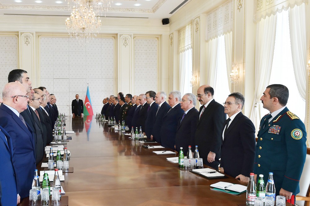 Bildiyiniz kimi, Ermənistan-Azərbaycan, Dağlıq Qarabağ münaqişəsinin həlli bizim əsas vəzifəmizdir. Azərbaycan həm siyasi, həm iqtisadi və bütün başqa sahələrdə gücləndikcə, əlbəttə ki, bu münaqişənin həlli daha da yaxın olacaqdır. Biz inkişaf dinamikamızı daha da sürətləndirməliyik və Azərbaycanda dayanıqlı inkişaf davam etməlidir. Son illər ərzində iqtisadi və siyasi sahələrdə əldə edilən uğurlar onu göstərir ki, biz düzgün yoldayıq. Hər zaman olduğu kimi, birinci rübdə də bizim çox fəal xarici siyasətimiz olmuşdur. Ancaq hesab edirəm ki, biz birinci rübdə daha da fəal işləmişik. Mən birinci rübdə bir çox xarici səfərlərdə olmuşam - həm rəsmi, həm işgüzar səfərlərdə. Davos İqtisadi Forumunda, Münxen Təhlükəsizlik Konfransında, Londonda Suriyaya dəstək konfransında iştirak etmişəm. Birləşmiş Ərəb Əmirliklərinə, İran İslam Respublikasına, Türkiyəyə, Amerika Birləşmiş Ştatlarına səfərlərim olubdur. Bütün bu səfərlərin coğrafiyası özlüyündə bir göstəricidir. Onu göstərir ki, Azərbaycan çox fəal və çoxşaxəli xarici siyasət aparır, bizim dostlarımızın sayı artır. Hətta bir-biri ilə o qədər də yaxın münasibətlərdə olmayan ölkələrlə Azərbaycan çox səmərəli, qarşılıqlı hörmət və maraqlar üzərində iş qurubdur.